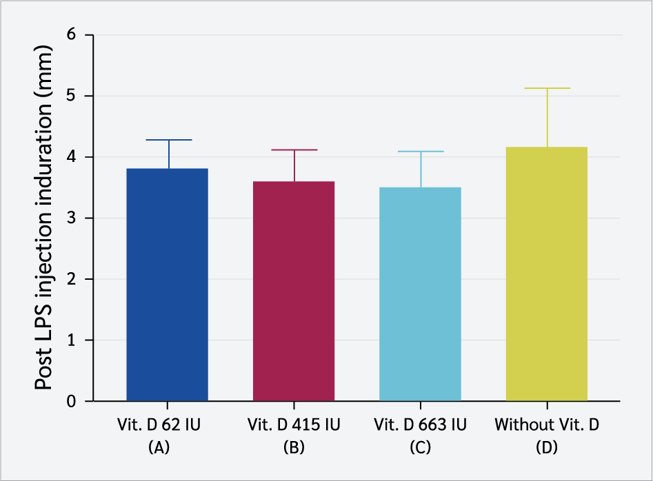 This study investigated the effects of maternal vitamin D₃ supplementation on the offspring’s inflammatory response to LPS, assessing induration diameter as a marker of local inflammation. The results showed no significant differences between groups, suggesting that maternal vitamin D₃ supplementation may not directly influence acute local inflammatory responses.